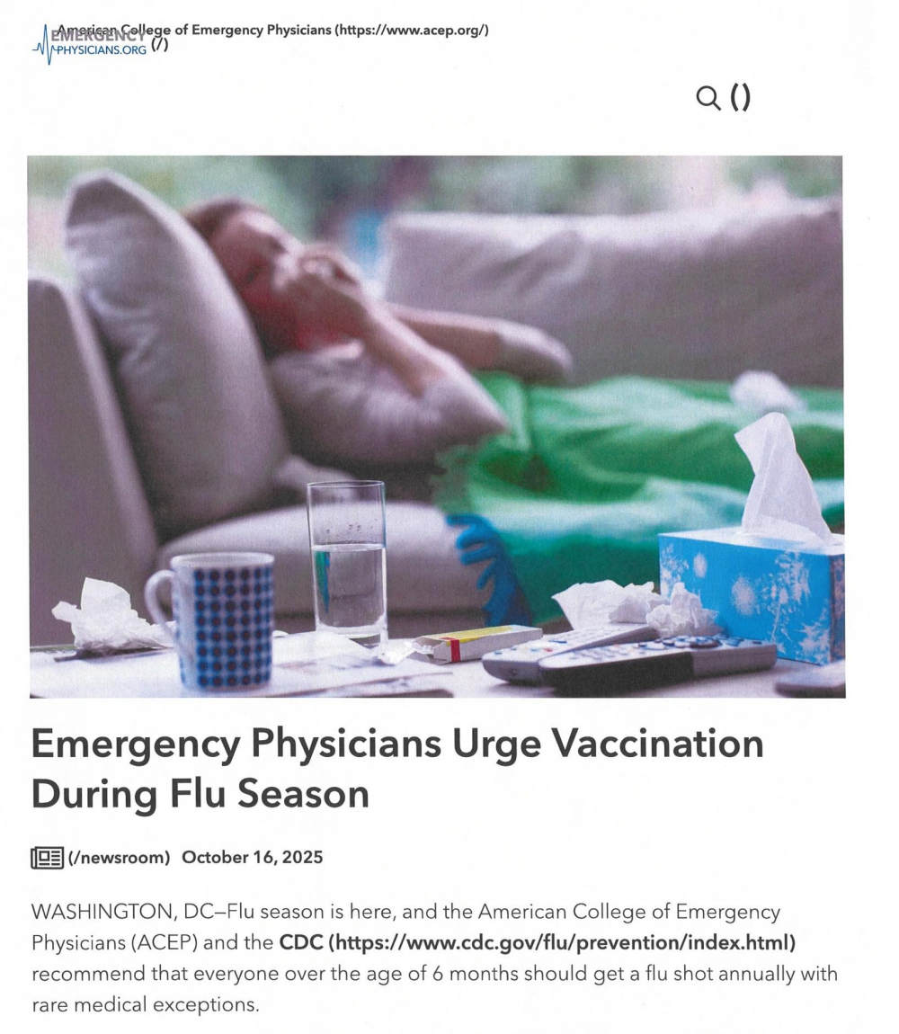 EMERGENCY PHYSICIANS URGE VACCINATION DURING FLU SEASON
